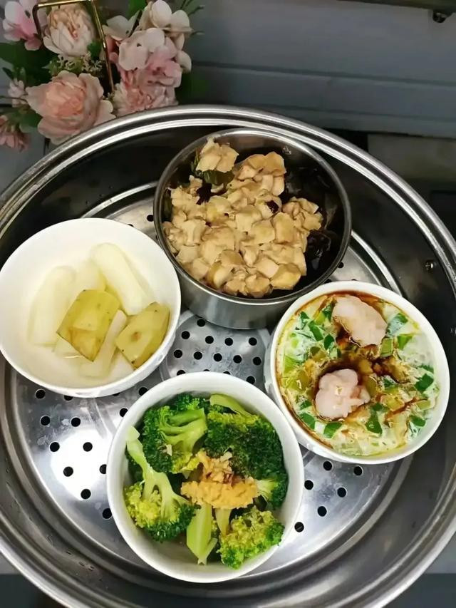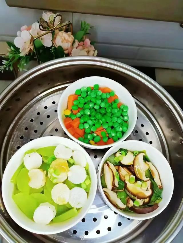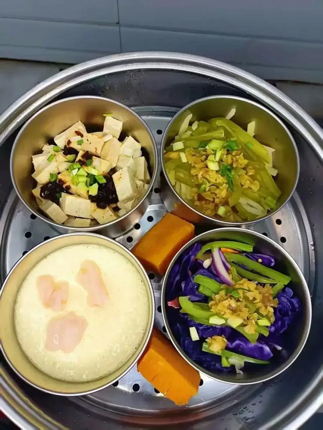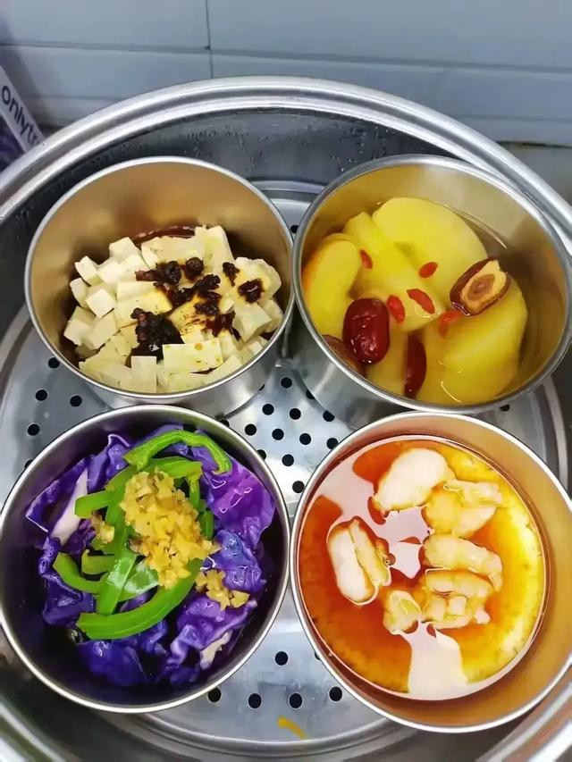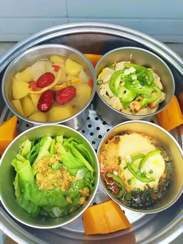 最近老婆从网上学了蒸锅菜,把菜搭配好后上锅蒸,一锅可以蒸四个小份菜,正好两人一顿的量。这种做法简单易学省时间,而且做的菜不油腻,易消化,特别适合肠胃不好或者中老年人。